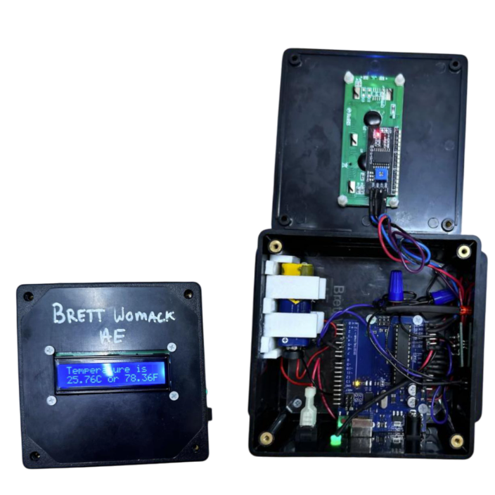 Developed a temperature monitoring device capable of detecting ambient temperature and alerting users when readings moved outside a defined safe range (70–75°F). Integrated electrical, mechanical, and programming components including an Arduino board, temperature sensor, LEDs, buzzer, and LCD display to enable real-time monitoring and alerts. Designed and assembled the system through soldering, wiring, enclosure fabrication, and embedded code development. Conducted functional testing to validate responsiveness to temperature fluctuations, triggering visual and auditory alerts beyond thresholds. Identified improvement areas in accuracy and compactness while achieving project objectives. Gained hands-on experience in interdisciplinary design, combining electrical, mechanical, and software engineering to create a practical, scalable temperature sensing solution.