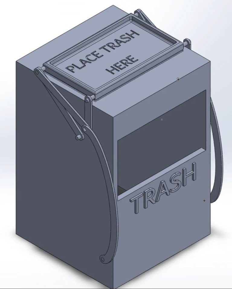 PROJECT OVERVIEW: The goal of this assignment was to study 4 bar linkages and degrees of freedom to design a trash bin that could move a tray of trash from the top of the bin to the garbage slot with out flipping the trash tray. Tasked with using Math Illustrator to find correct measurements then building a model and motion study with correct measurements.