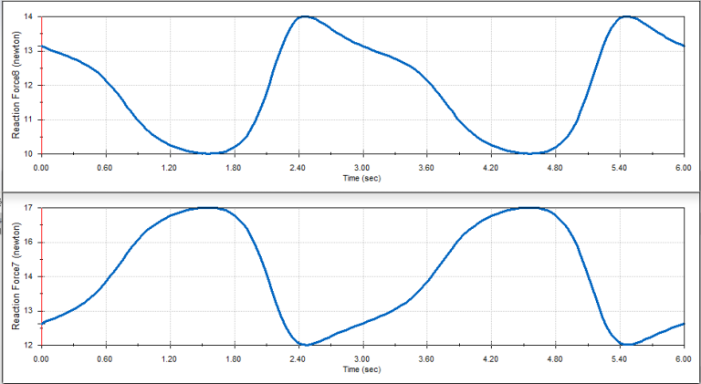Each Bearing experienced a reaction force with the right bearing having a max reaction force of 16.80993 Newtons and the left bearing having a max reaction force of 14.22265 Newtons.