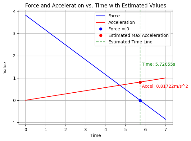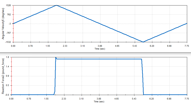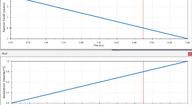 Simulation used to find max acceleration of the cart. Used acceleration vs. time graph with reaction force vs time graph to find when the front of the bar had a reaction force of 0 meaning it was almost about to tip.
