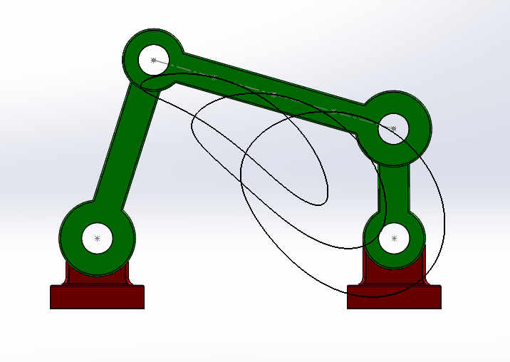 PROJECT OVERVIEW: Created a 4 bar mechanism with two stationary bearings, crank rocker, and extension links to study the motion of 4 bar systems for upcoming project (Trashcan Project).